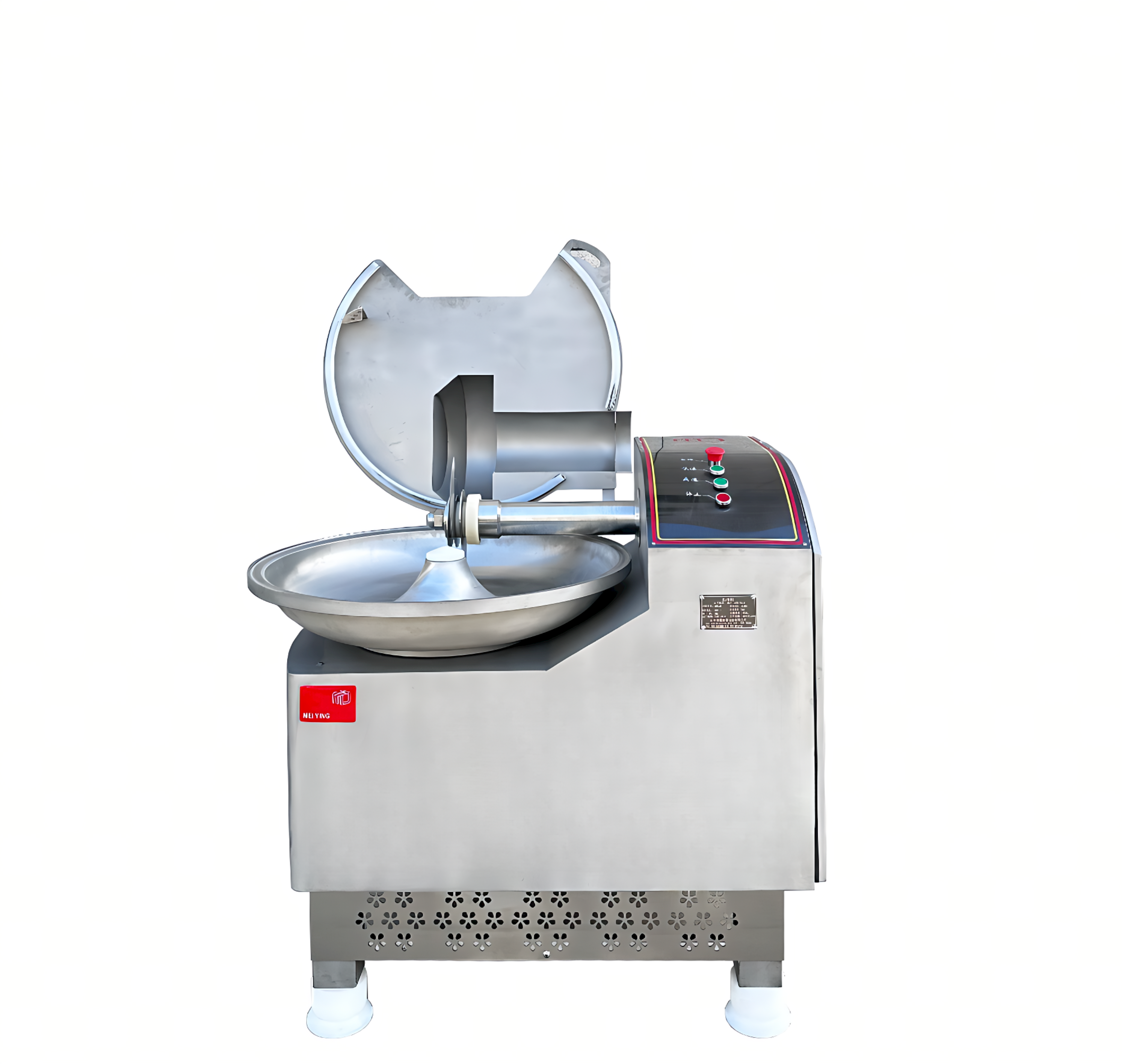 整機(jī)不銹鋼外殼包覆料盆及其上蓋、刀軸等均采用304不銹鋼材料精工制造而成!三電機(jī)配置,切刀、料盆和出料分別單獨(dú)控制,互不影響,自動(dòng)出料;該機(jī)設(shè)計(jì)合理,結(jié)構(gòu)緊湊,外形美觀,易于維護(hù)清洗,使用它不僅能將各種肉塊碎肉、板油等進(jìn)行精細(xì)切碎,還可以將其它原料如蔬菜、水果、冰屑、湯汁以及調(diào)味科等輔材與肉沫一起進(jìn)行充分混合,攪拌均勻;標(biāo)配緊急停止按鈕和YZW耐油橡套電源線,安全可靠。