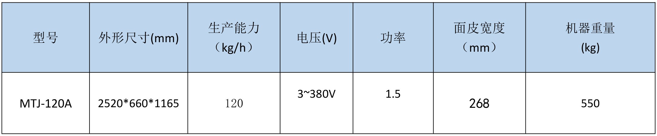 MTJ-120A面條機主要由機架、電動機、減速機、齒輪和鏈輪傳動機構(gòu)、進料斗、軋輥、上面架以及電器控制部分等組成。