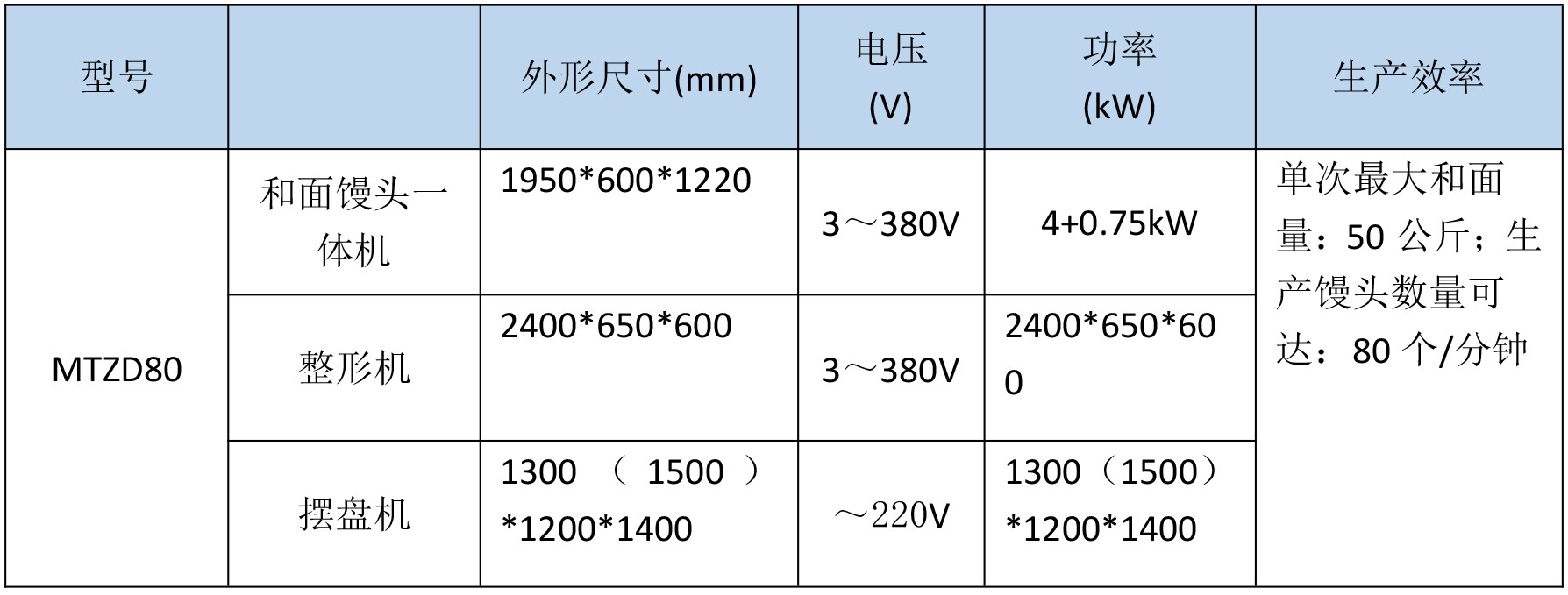 MTZD80型饅頭流水線(xiàn)是我公司為大型食堂和配餐中心設(shè)計(jì)制造的自動(dòng)化饅頭加工設(shè)備,包含了和面饅頭一體機(jī)、整形輸送機(jī)和自動(dòng)擺盤(pán)機(jī)三個(gè)部分,也可拆分開(kāi)單獨(dú)使用其中的任意一臺(tái)單體